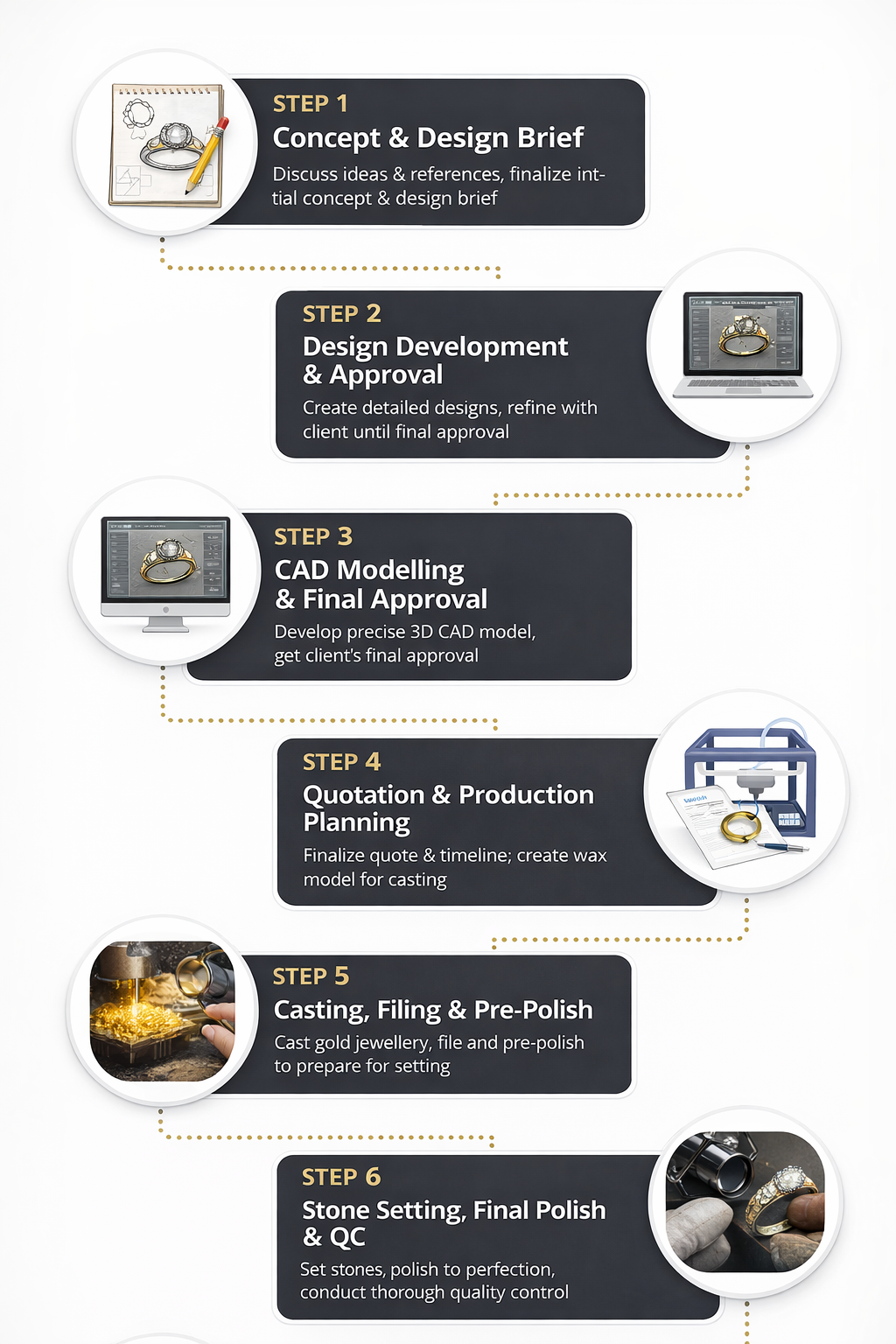 We partner with high-end boutiques to deliver finely crafted jewellery with consistent quality and dependable timelines.